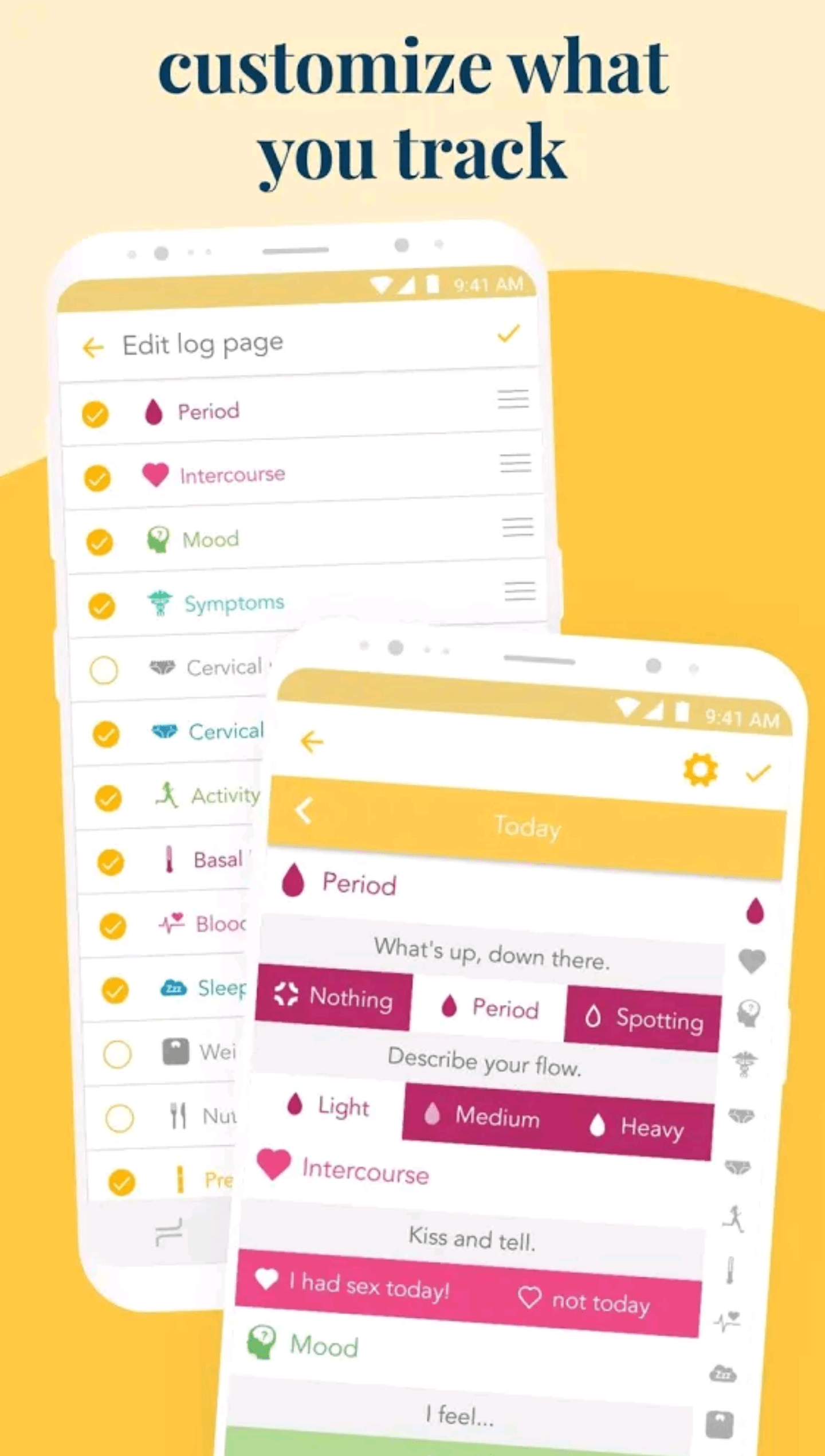 The simplest way for a modern day woman to track her cycle is to use an app! There are so many choices you can download and try out. Find one that fits with your personality; different apps will appeal to different audiences. I use one called Ovia Fertility: Ovulation and Cycle Tracker. Most of these apps will allow you to track your symptoms, weight, mood, exercise, water, sleep, and sex. Track whatever’s important to you. They also provide online communities where you can ask questions and see if other women noticed similar things.