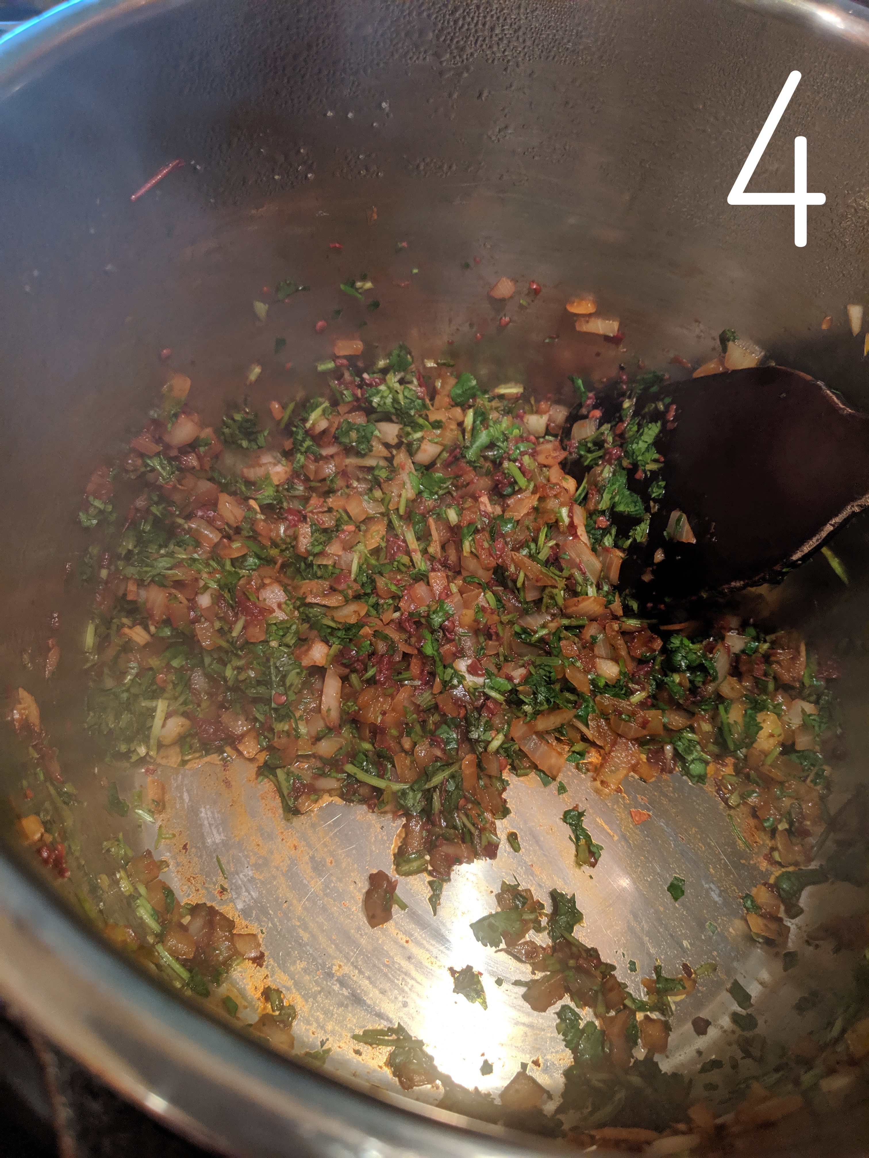 - Soak dried beans. 2. Pour off soaking liquid. 3. Sauté onion. 4. Add spices and herbs.