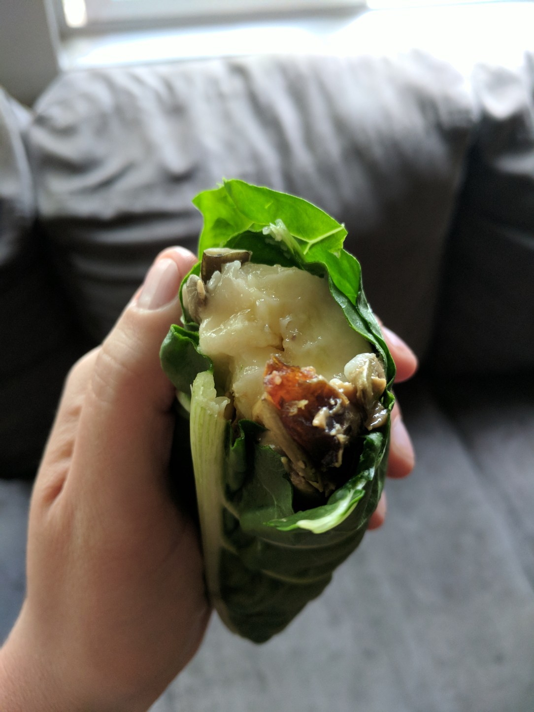 This collard-banana wrap is my favorite late breakfast when I want something that’s sweet, savory, and substantial. It’s made with raw ingredients and comes together quickly.